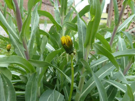 Mitte der Waidpflanze ein Löwenzahn Stängel mit Blütenknospe